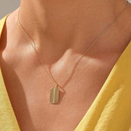 14k Flat Emerald Shape Line Diamond Pave Necklace