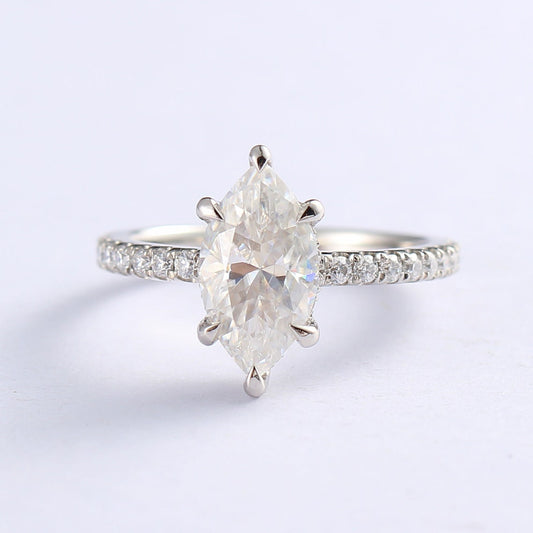 2.0 CT Marquise Moissanite Hidden Halo Engagement Ring With Pave Setting