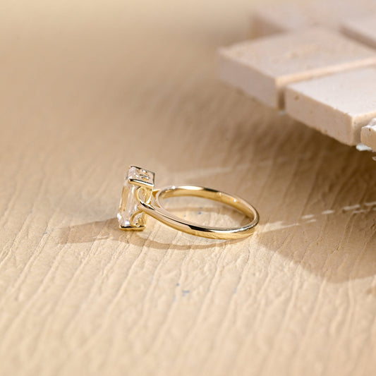2.0 CT Emerald Cut Solitaire Moissanite Engagement Ring