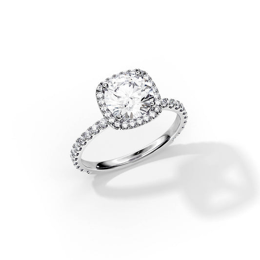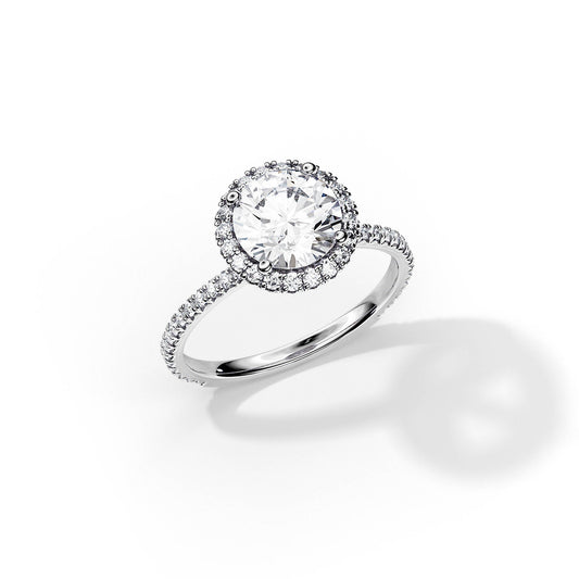 2.0 CT Round Cut Moissanite Halo & Pave Engagement Ring