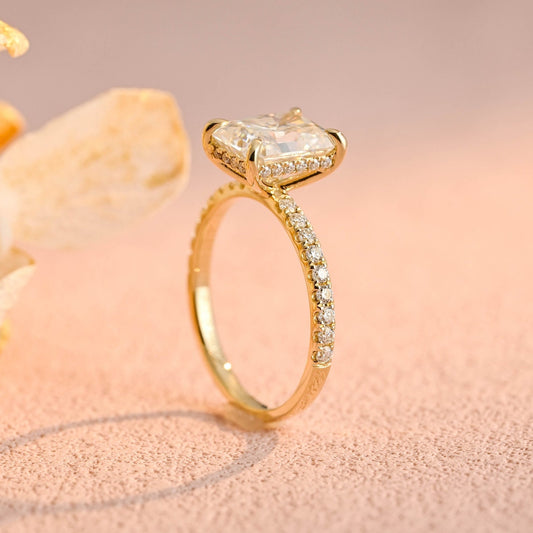 2.0 CT Radiant Moissanite Hidden Halo Engagement Ring