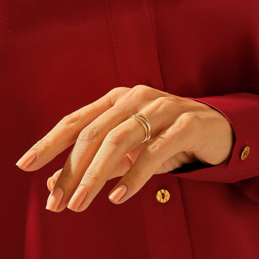 Round Cut Diamond Solid Gold Wavy Line Ring for Women