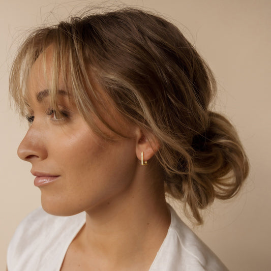 Rectangle Link Moissanite Diamond Earrings in Yellow Gold