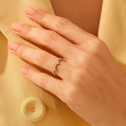 Round Cut Moissanite Diamond Crown Wedding Band in Solid Gold