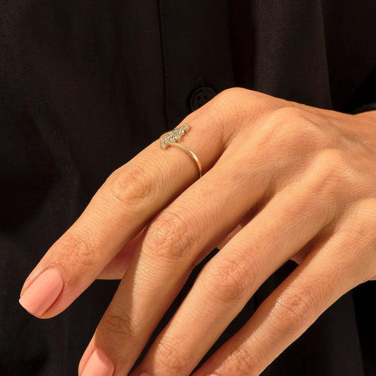 0.29CT Round Unique Cluster Moissanite Diamond Wedding Band In 14K Solid Gold