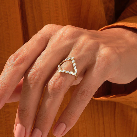 Round Moissanite Diamond Sun & Crescent Moon Engagement Ring In Solid Gold