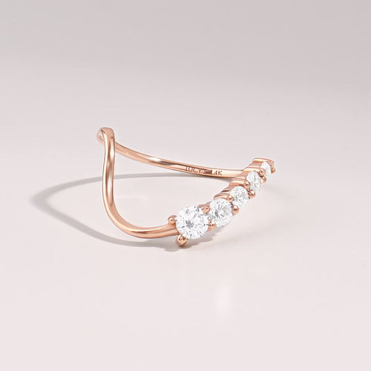 0.3CT Round Five Stone Moissanite Diamond Wave Wedding Band