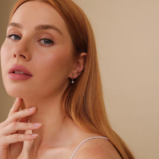 0.32CT Round Star Shaped Moissanite Diamond Huggie Hoop Earrings