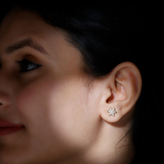 Round Cut Diamond Unique Snowflake Stud for Christmas Gift