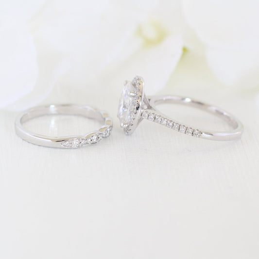 Tiara Halo Scalloped Bridal Set With Moissanite Diamond Band