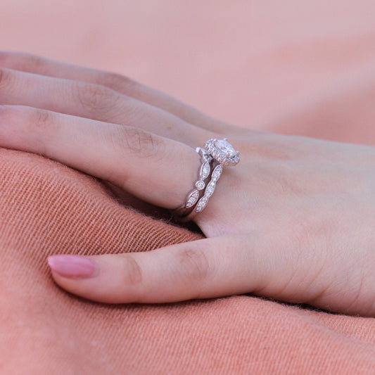 1.0CT Vintage Pear Cut Moissanite Halo Bridal Engagement Ring Set