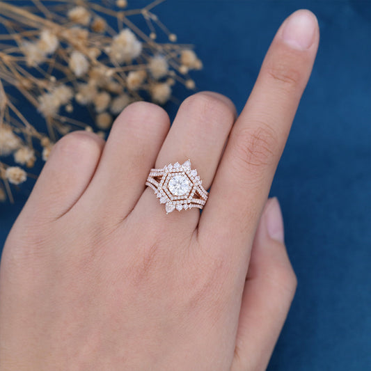 1.50 CT Pear Cut Cluster Art Deco Moissanite Bridal Ring Set