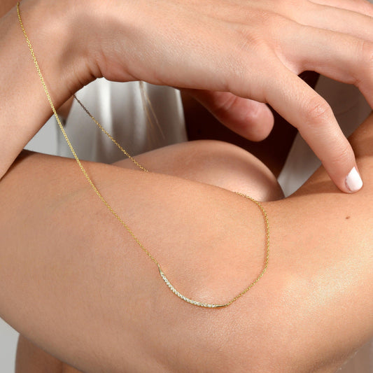 0.18 TCW Round Moissanite Curved Bar Necklace