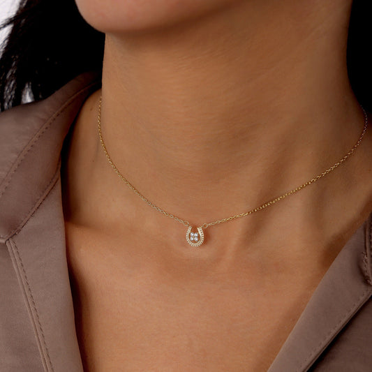 0.10 TCW Round Moissanite Tiny Horseshoe Necklace