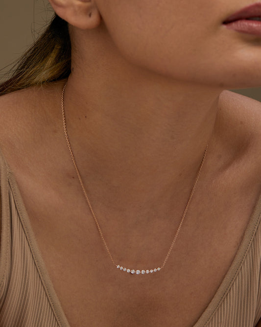 Round Cut Floating Diamond Moissanite Curved Bar Necklace For Women
