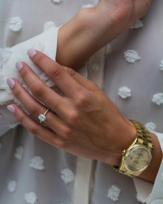 3.0 CT Radiant Solitaire Hidden Halo & Pave Moissanite Engagement Ring