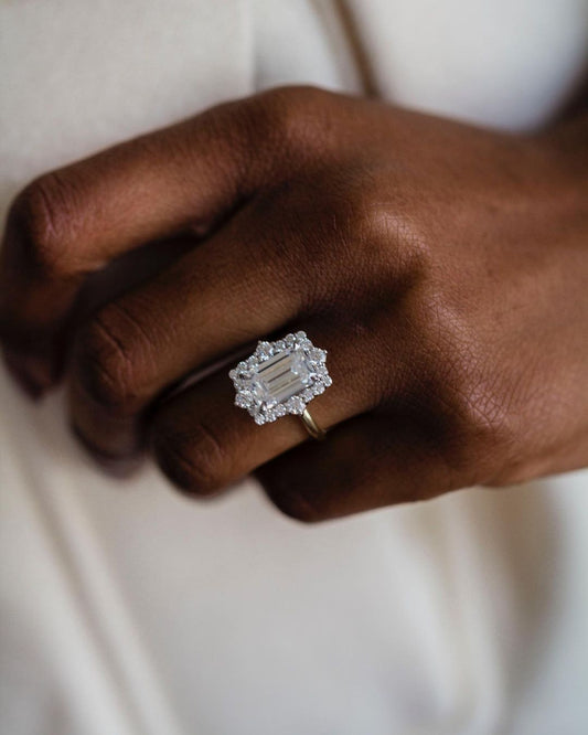 3.35 CT Emerald Cluster Halo Moissanite Engagement Ring