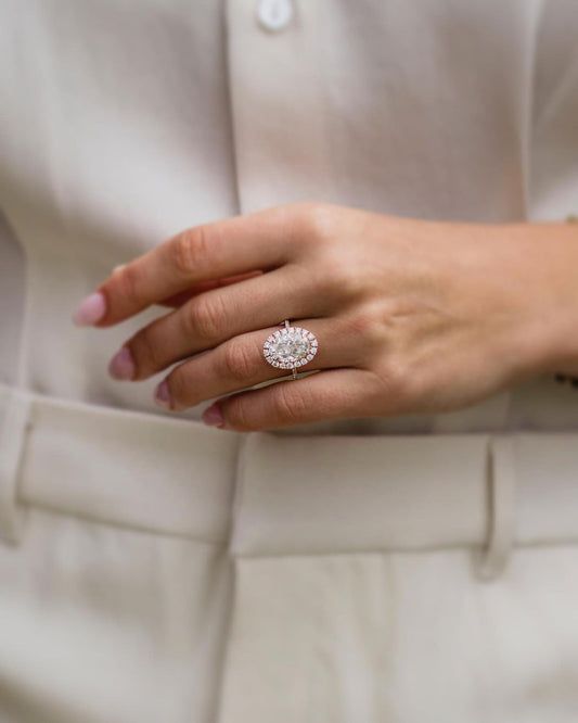 3.41 - 5.41 CT Oval Cut Halo & Pave Moissanite Engagement Ring