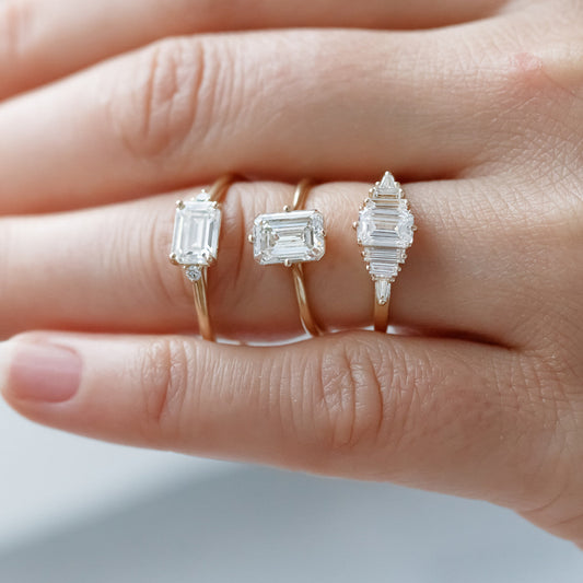1.50 CT Emerald Moissanite East West Cluster Engagement Ring