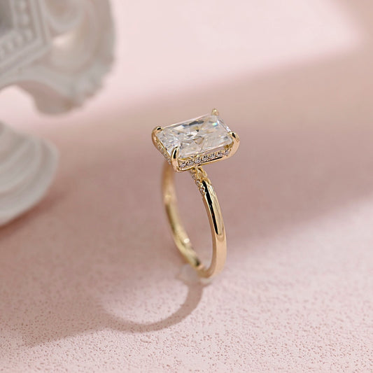 3.5 CT Radiant Moissanite Hidden Halo Engagement Ring