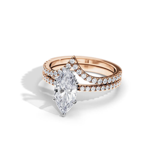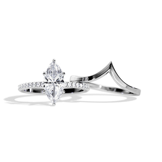 1.50 CT Marquise Moissanite Hidden Halo & Pave Setting Bridal Ring Set