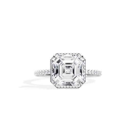 3.20 CT Asscher Cut Moissanite Hidden Halo & Pave Engagement Ring