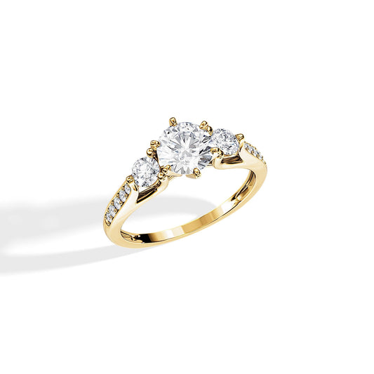 1.0 CT Three Stone Round Cut Moissanite Pave Engagement Ring