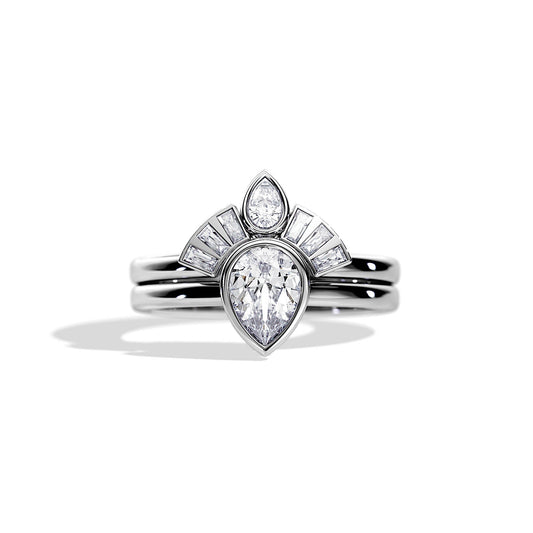 0.80 CT Pear Moissanite Art Deco Setting Bridal Ring Set