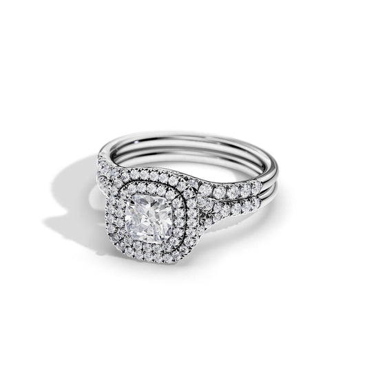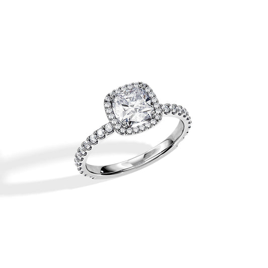 1.0 CT Cushion Cut Moissanite Halo & Pave Engagement Ring