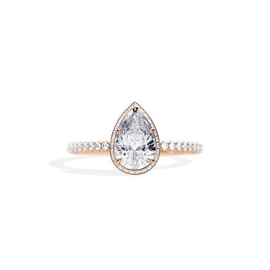 1.50 CT Pear Cut Moissanite Double Hidden Halo & Pave Engagement Ring