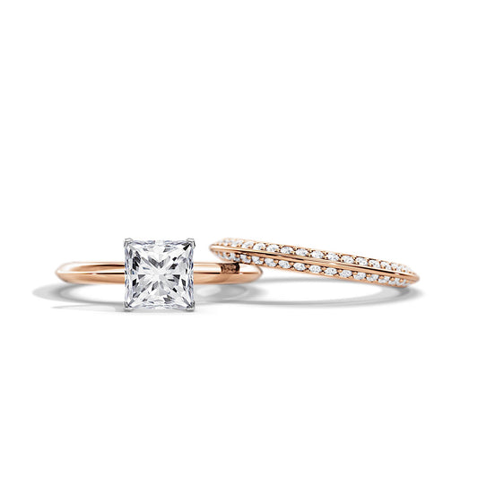 2.0 CT Princess Moissanite Solitaire Setting Bridal Ring Set