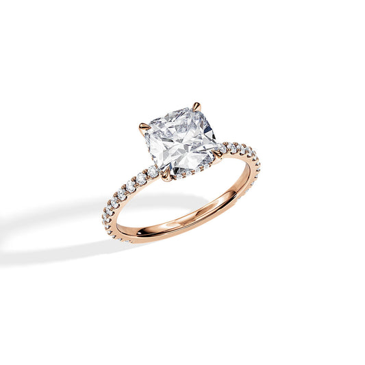 2.40 CT Cushion Cut Moissanite Hidden Halo & Pave Engagement Ring