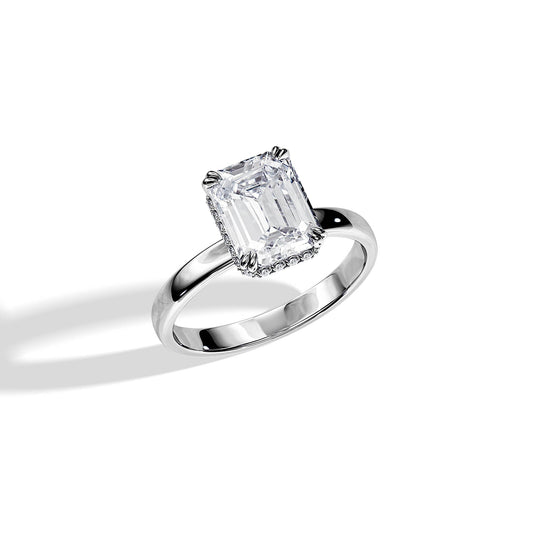 2.50 CT Emerald Cut Hidden Halo Moissanite Engagement Ring