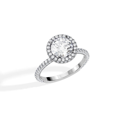 1.50 CT Round Cut Halo & Pave Moissanite Engagement Ring