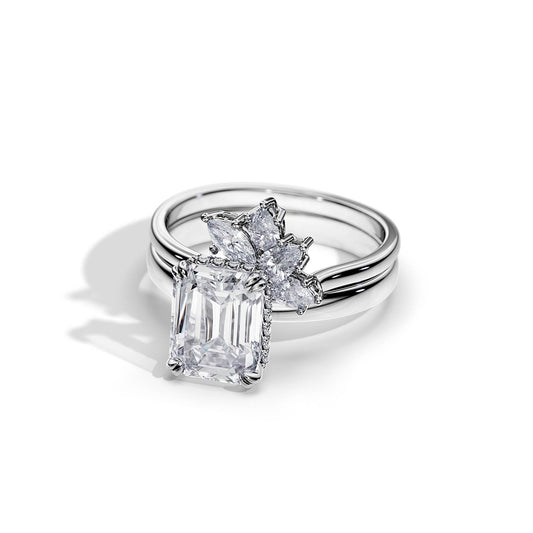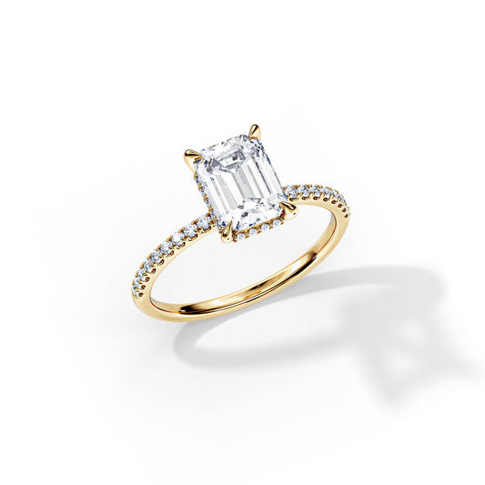 2.50 CT Emerald Cut Moissanite Hidden halo & Pave Engagement Ring