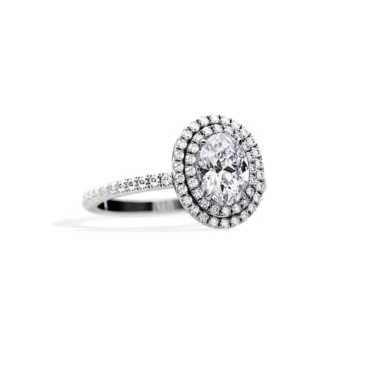 1.0 CT Oval Cut Moissanite Double Halo & Pave Engagement Ring