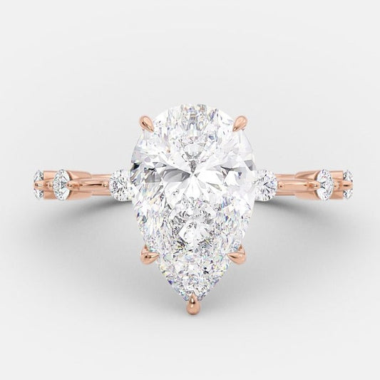 2.50ct Pear Cut Moissanite Diamond Pave Engagement Ring