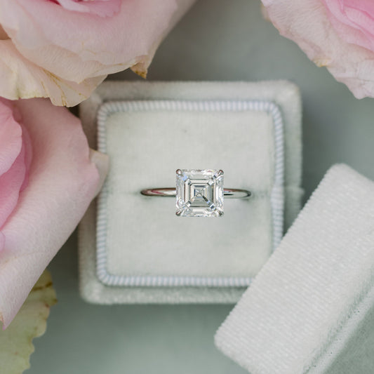 2.0ct Asscher Cut Moissanite Diamond Petite Solitare Engagement Ring