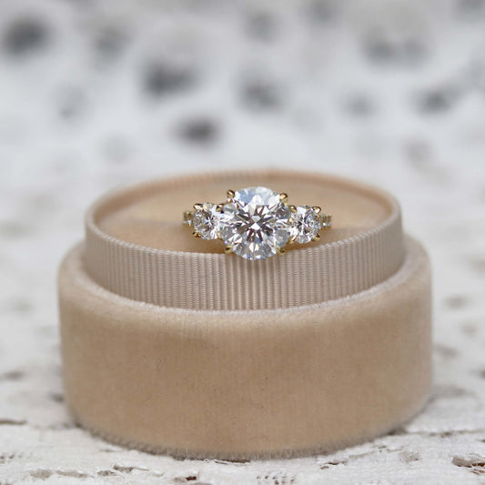 2.25CT Round Brilliant Cut Moissanite Three Stone Diamond Engagement Ring