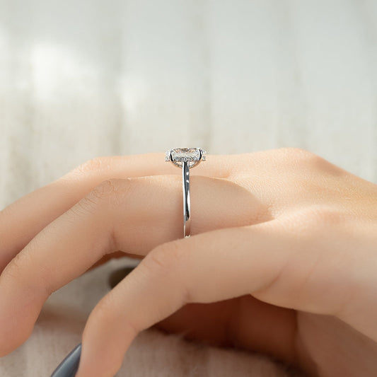 1.0 CT Pear Moissanite Hidden Halo Dainty Pave Engagement Ring