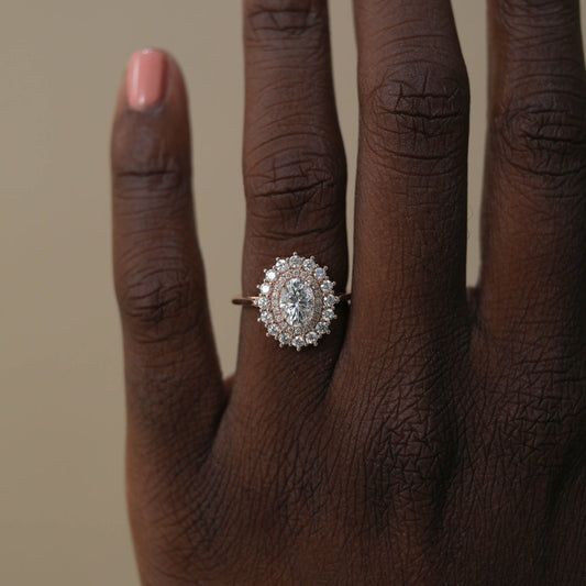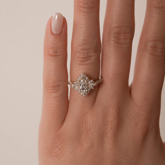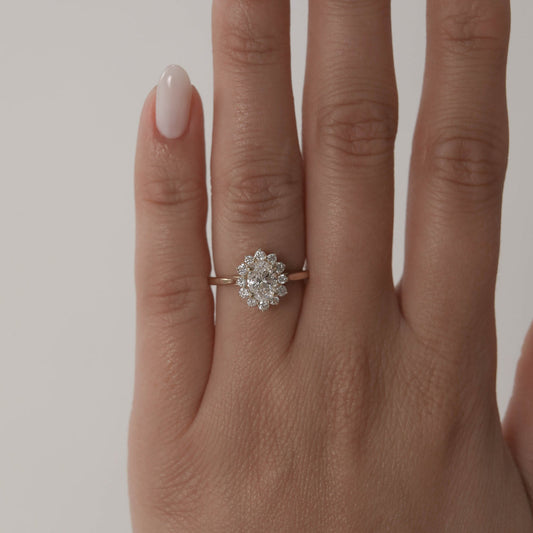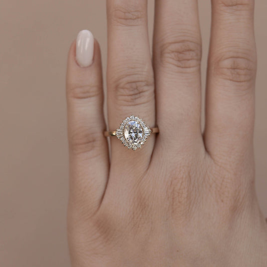 0.75ct Oval Cut Moissanite Cluster Diamond Engagement Ring