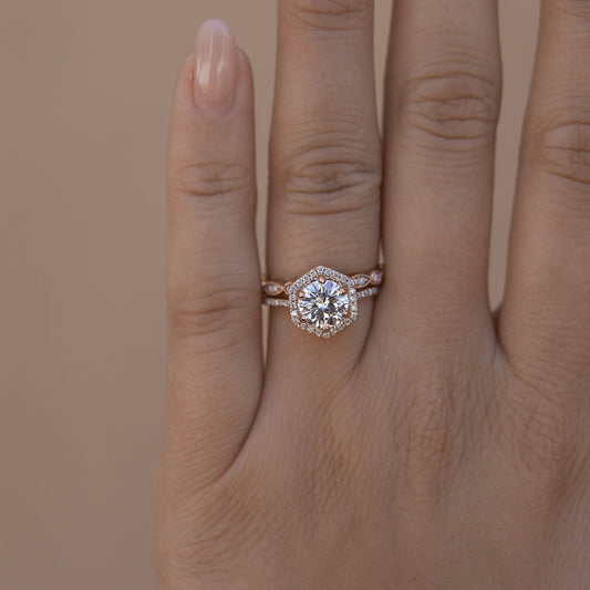1.05ct Round Cluster Diamond Moissanite Engagement Ring