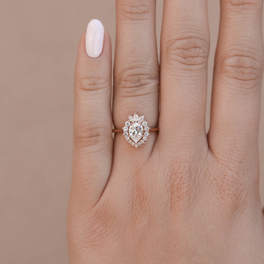 1.25ct Pear Cut Cluster Halo Moissanite Diamond Engagement Ring