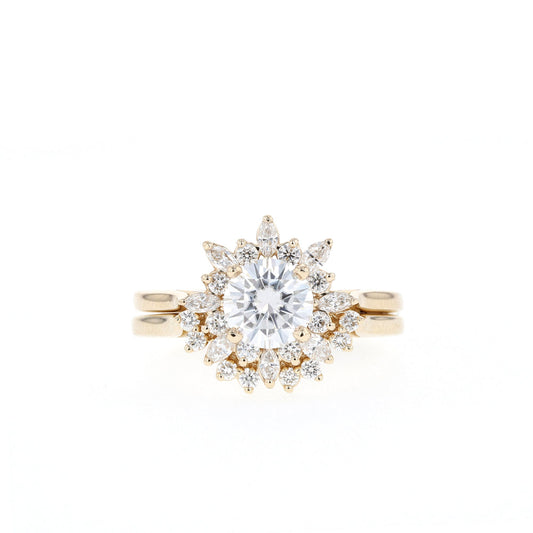 1.0CT Round Moissanite Halo Cluster Diamond Engagement Ring