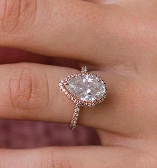 3.45ct Pear Cut Halo Moissanite Diamond Pave Engagement Ring