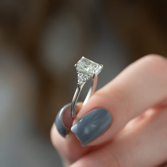 3.0 CT Emerald Moissanite Three Stone Engagement Ring