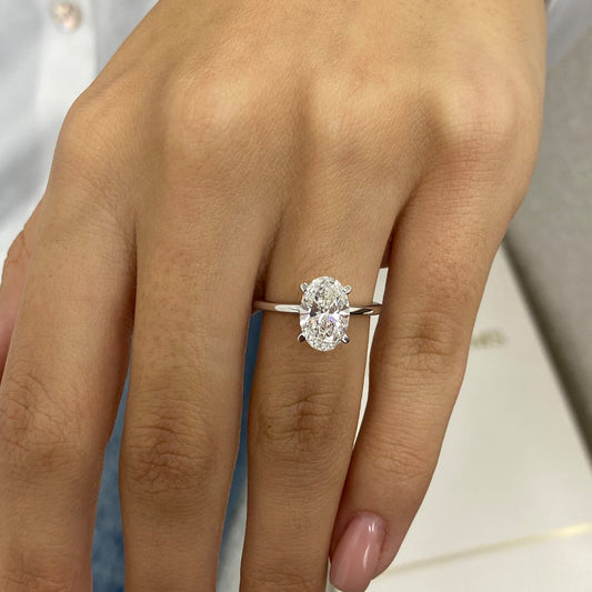 3.0 CT Oval Moissanite Hidden Halo Engagement Ring With Pave Setting