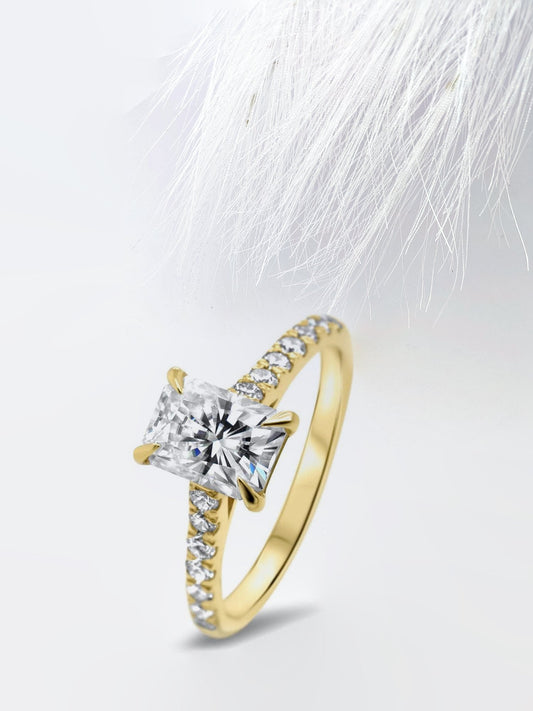 3.0CT Radiant Cut Pave Moissanite Diamond Engagement Ring in Yellow Gold