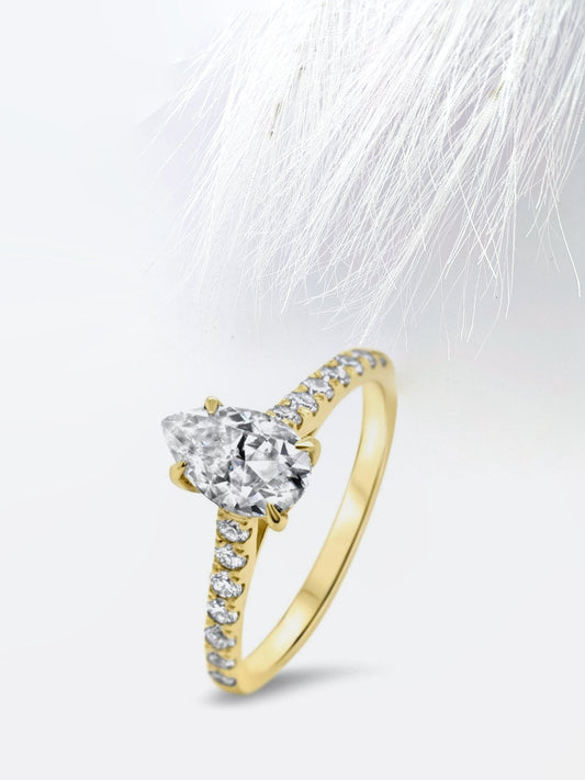 2.0CT Pear Cut Bezel Moissanite Diamond Engagement Ring in Yellow Gold