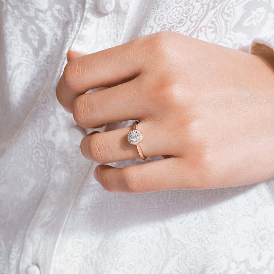 0.35CT Round Cut Halo Moissanite Diamond Engagement Ring For Women